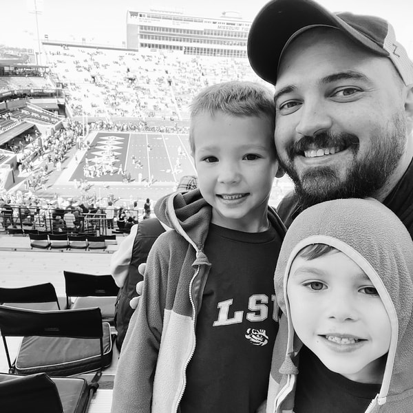 Mike's favorite thing this year was taking Kolbe and Leo to the LSU vs Mizzou game on his birthday.