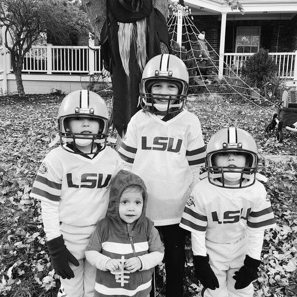 Leo is in his second (and last!) year of preschool and has blossomed into a curious, kind, and fun-loving leader in his classroom. He has found a love for sports and never missed an LSU game if he could help it (just like his dad!). His favorite subject of conversation continues to be lawn mowers, and he has expanded his knowledge with many views of YouTube landscaping videos. Leo has maintained his title as our "sour patch" kid (first he's sour, then he's sweet). He loves the color black, playing all the sports in our basement, dressing up as a football player (daily), and telling us about his day. We are so proud of how well Leo loves the people in his life and is always there to be a friend.